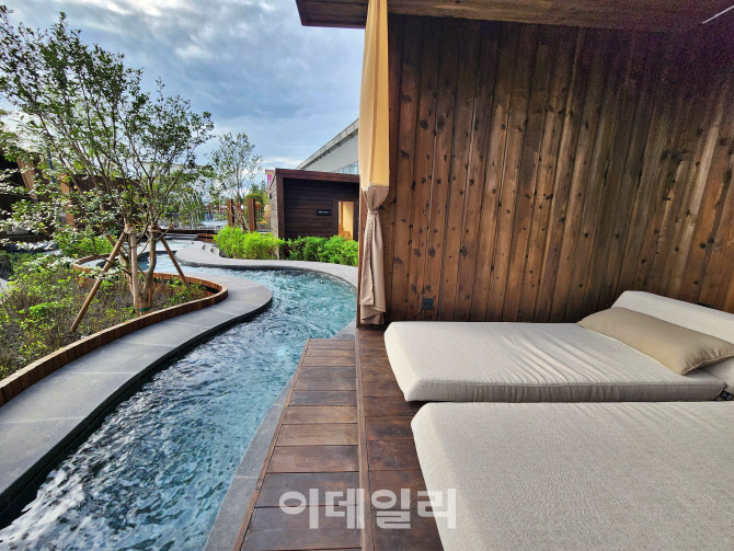 | | 소노캄 경주의 웰니스 풀앤스파. 실내외 수영장, 노천탕, 프라이빗 카바나를 연결한 복합형 수공간이다. |