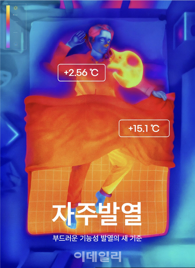 ‘자주발열’ 시리즈는 발열테스트에서 원단의 표면 온도가 상승하는 기능성 테스트를 거쳤다. 의류와 내의, 파자마는 입었을 때 원단의 표면 온도가 최대 +2.81℃ 상승했으며, 침구류는 덮었을 때 표면 온도가 최대 +15.1℃ 상승했다는 게 회사의 설명이다.