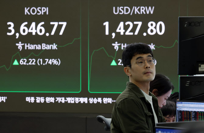 엠피닥터에 따르면 이날 오전 9시 38분 현재 코스피 지수는 전 거래일 대비 59.10포인트(1.65%) 오른 3646.04를 기록 중이다.